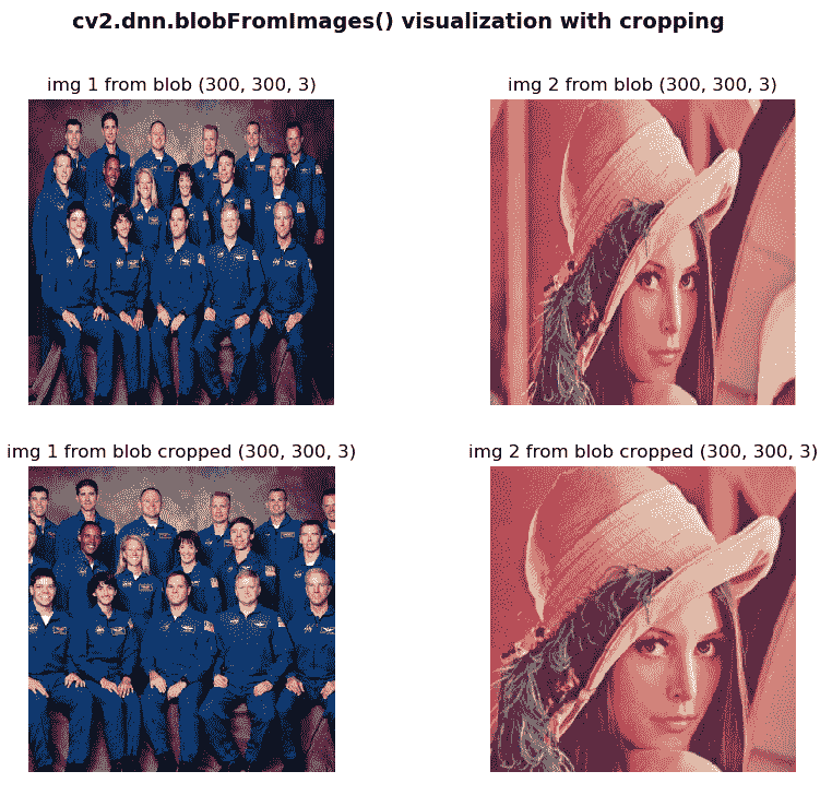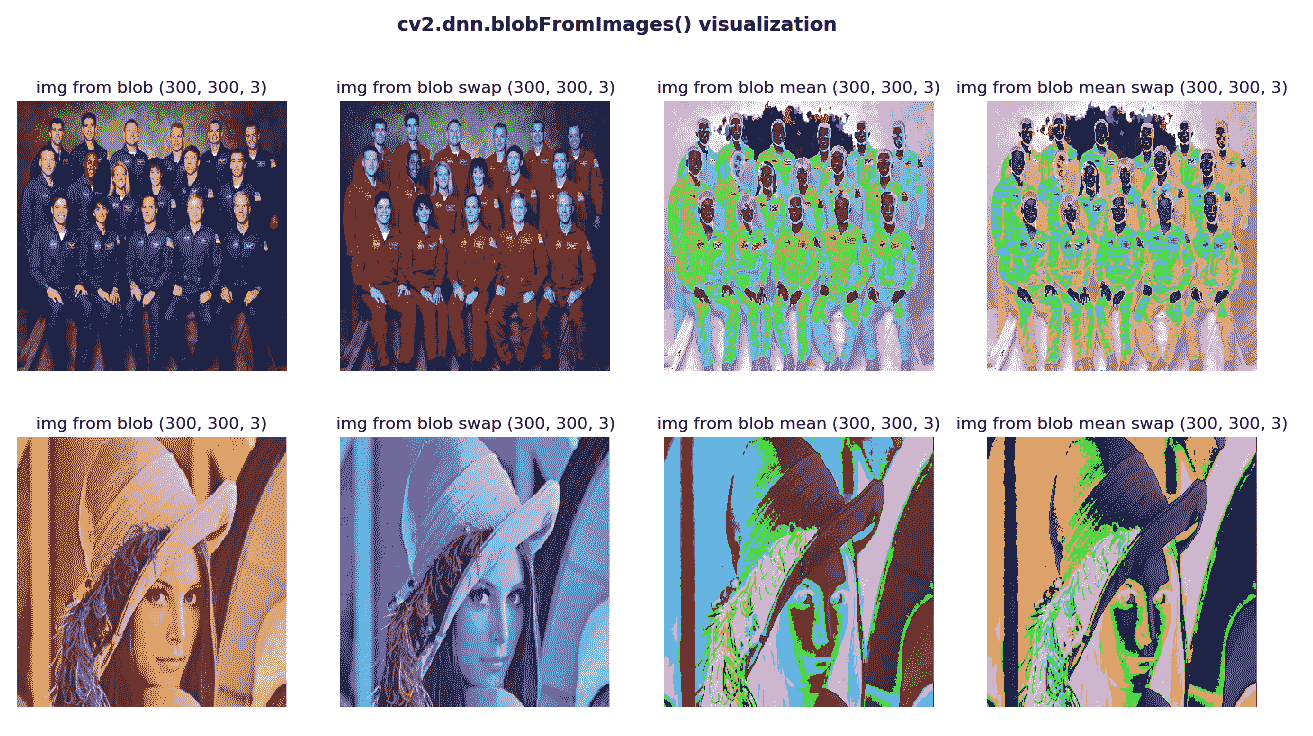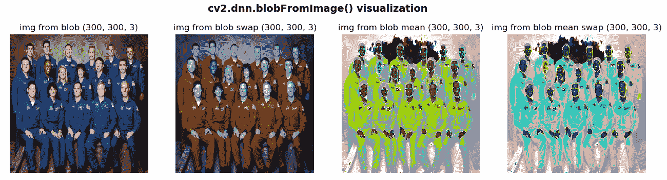 blob = cv2.dnn.blobFromImage(image, 1.0, (300, 300), [104., 117., 123.], False, False) - 以下几行执行什么操作?