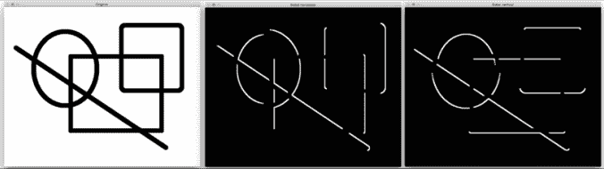 左侧的核检测水平边缘,右侧的核检测垂直边缘。 OpenCV 提供了直接将Sobel过滤器应用于给定图像的函数。 这是使用 Sobel 过滤器检测边缘的代码: