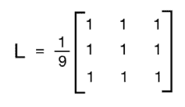 构造低通过滤器的一种简单方法是均匀地平均像素附近的值。 我们可以根据要平滑图像的程度来选择核的大小,并且相应地会有不同的效果。 如果您选择更大的尺寸,那么您将在更大的区域进行平均。 这趋于增加平滑效果。 让我们看一下3x3低通过滤器核的样子: