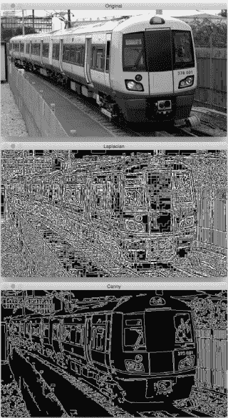 即使Laplacian核在这种情况下也能很好地工作,但它并不总是能很好地工作。 如下面的屏幕快照所示,这会在输出中引起很多噪声。 这是Canny边缘检测器派上用场的地方: