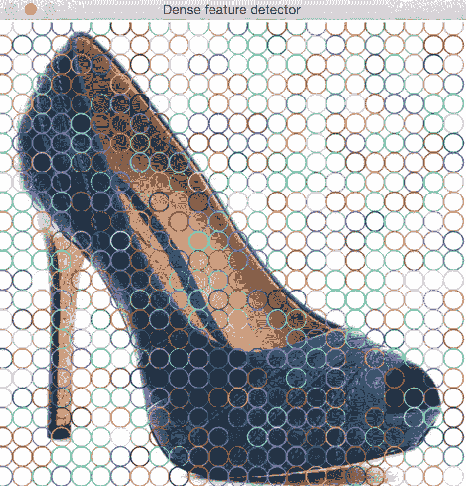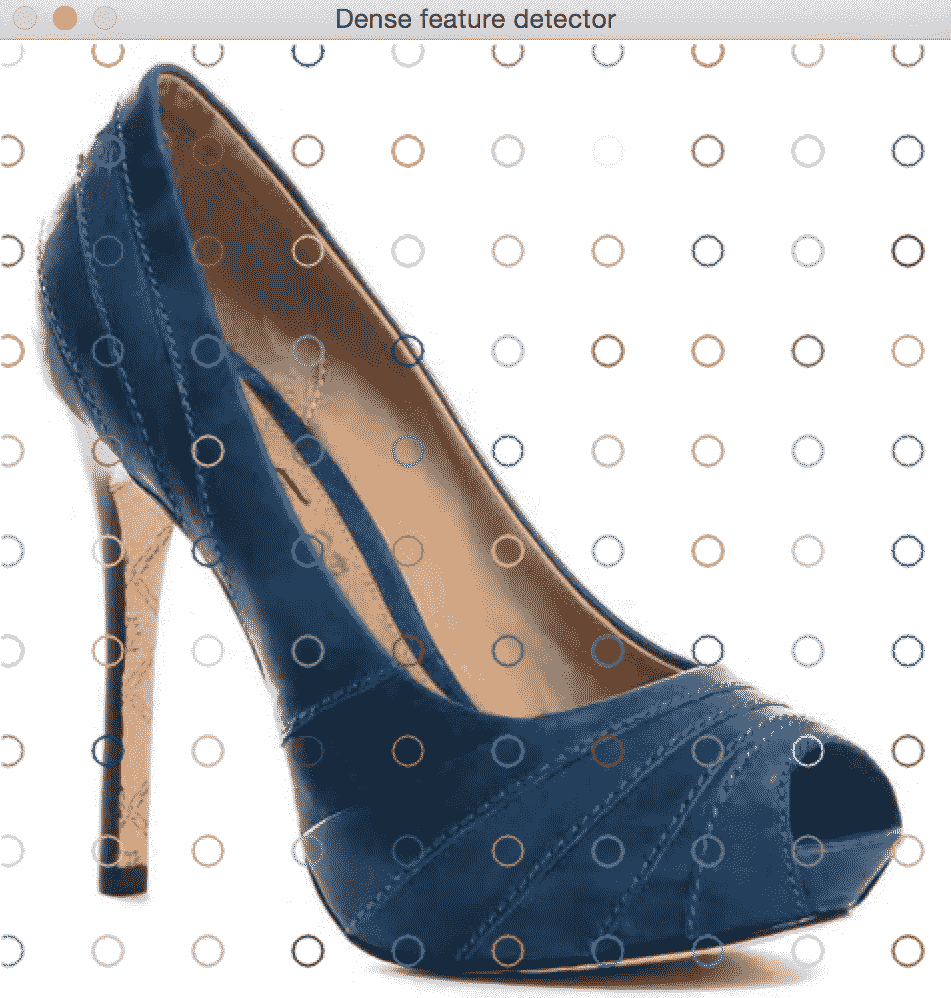 不幸的是,如果您曾经使用cv2.FeaturetureDetector_create("Dense")检测器,则该检测器已从 OpenCV 3.2 以后的版本中删除,因此我们需要实现自己的一个遍历网格并获取关键点的方法: