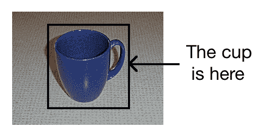 如您所见,对象检测器可以检测到茶杯的存在,仅此而已。 如果训练对象识别器,它将为您提供以下信息,如下图所示: