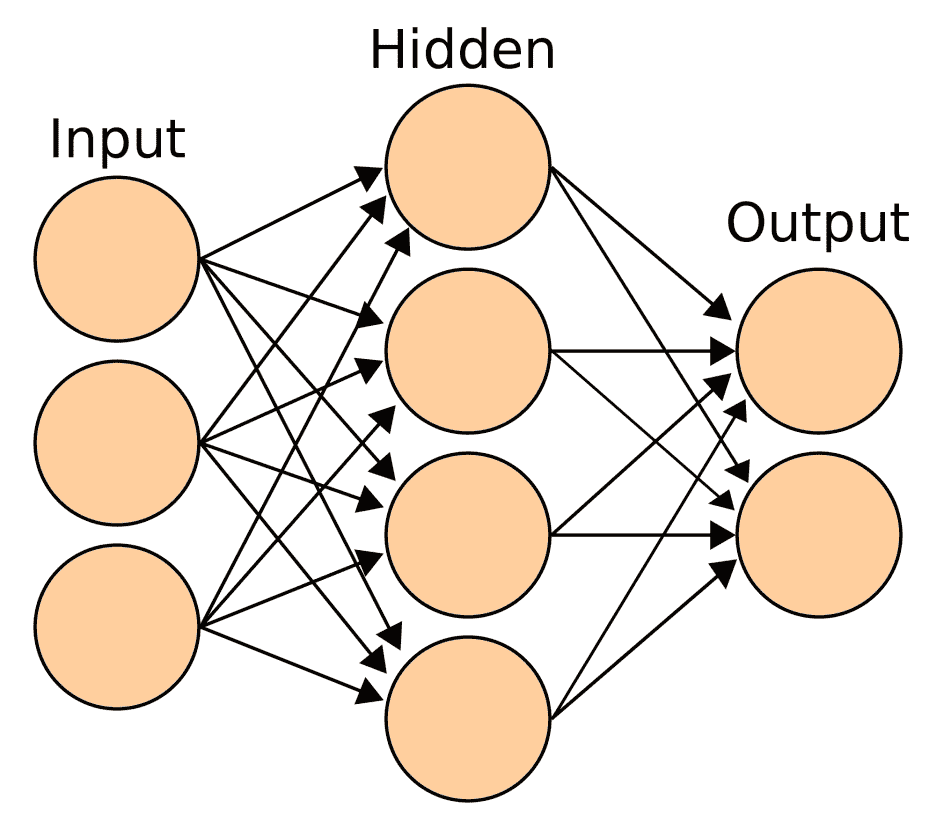 在本节中,我们将看到哪些元素参与了 ANN-MLP。 首先,我们将代表一个常规的 ANN-MLP 形状,每层的输入,输出和隐藏以及信息如何在它们之间流动: