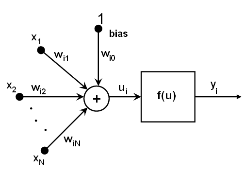 更深入地研究具有隐藏层的每个神经元,我们可以说它们所有的行为都类似。 从上一层(输入节点)中检索值,并与某些权重(每个神经元各自)加偏差项相加。 使用激活函数f转换总和,该函数对于不同的神经元也可能有所不同,如下图所示: