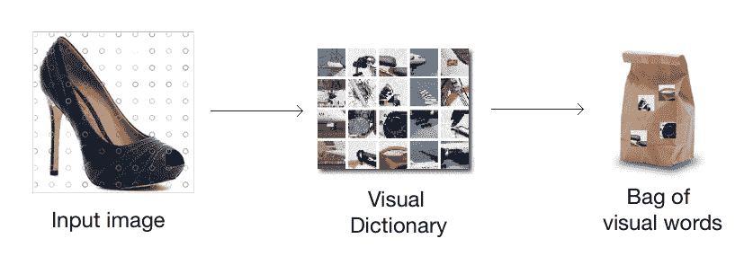 如前所述,我们需要使用词袋(BOW)对齐每个图像的描述符数量。 为此,我们将首先使用密集特征检测器为每个图像馈送的关键点提取每个图像的特征向量,然后将向量转发到 K 均值聚类以提取质心,这将帮助我们最终获得 BOW 。