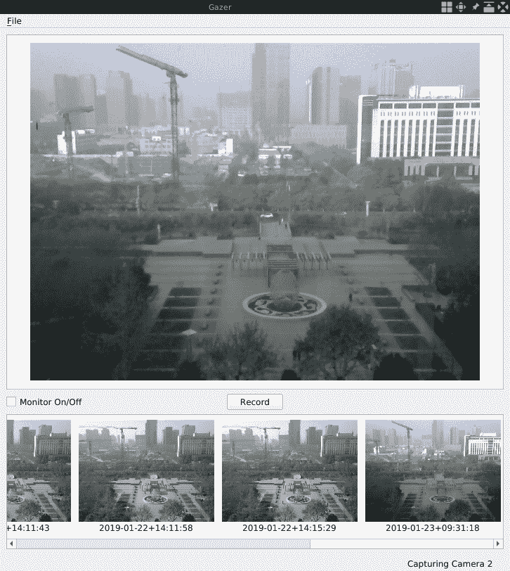 在此插槽中,如果捕获线程为null,我们将立即从方法返回;否则,返回false。 否则,我们将根据复选框的新状态将捕获线程的运动检测状态设置为打开或关闭。 另外,如果打开了动作检测功能,我们将禁用录制按钮,以避免在检测到动作时使手动启动的录制过程干扰自动启动的录制过程。 准备好该插槽后,我们可以在initUI方法中创建该复选框后,将其连接到该复选框: