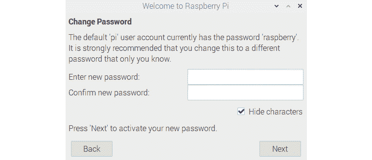 您可以选择为默认的pi用户设置新密码。 如果将其保留为空白,则它将保留默认密码。 以下是出现的下一个窗口: