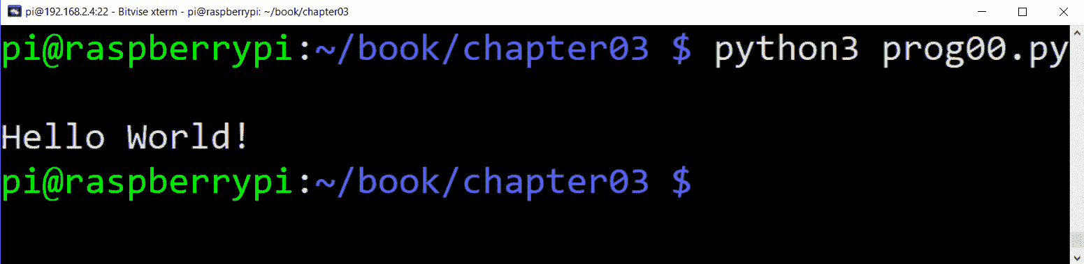 图 3.9 –在 LXTerminal 中执行 Python 3 程序
