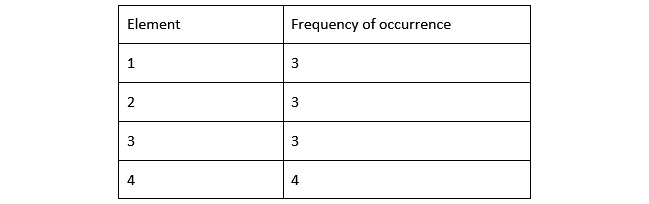 直方图是数据分布的图形表示。 基本上,它是频率分布表的图形。 让我通过一个例子对此进行解释。 假设我们有一个数据集,例如(1, 2, 1, 3, 4, 1, 2, 3, 4, 4, 2, 3, 4)。 在这里,频率分布如下所示: